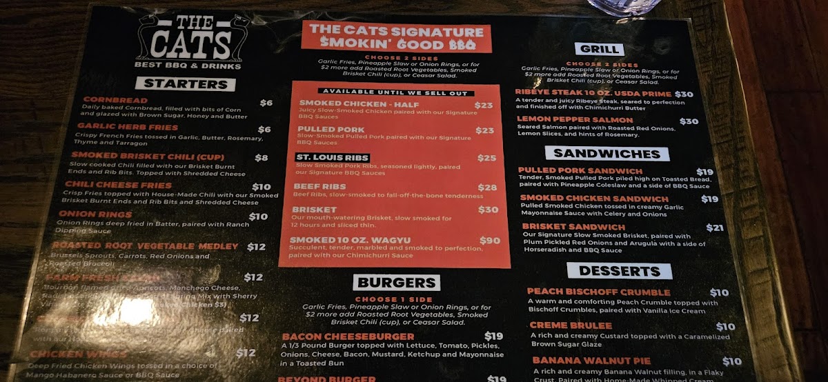 Welcome to The Cats, a culinary gem nestled in Los Gatos, California, where diverse flavors meet a warm, welcoming atmosphere. The menu masterfully blends American BBQ with authentic Filipino cuisine, providing a delightful experience for every palate.